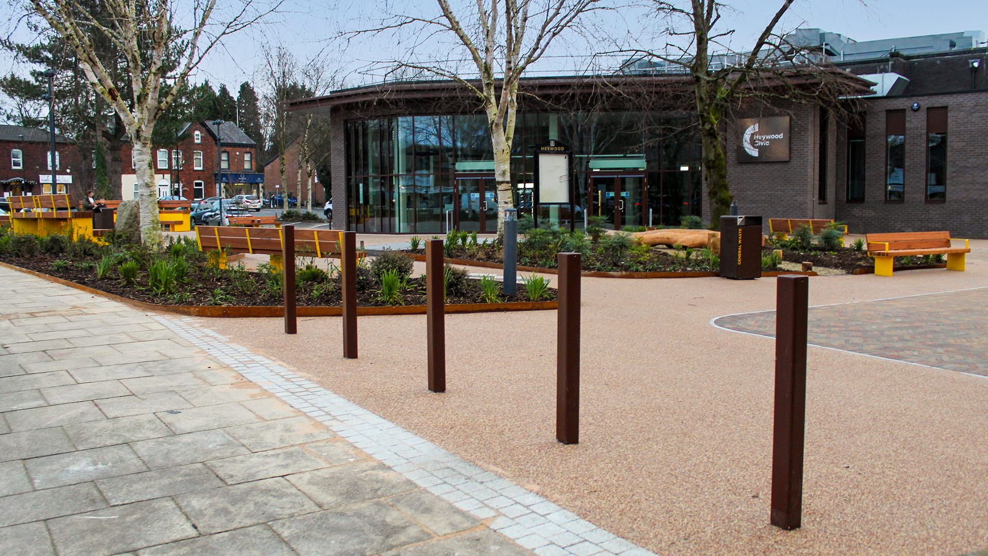 By combining bold colour, durable materials and inclusive design, the scheme encourages people to stay longer, interact with the space and return regularly. The project has helped create a new civic heart for Heywood, supporting the wider regeneration of the town centre and delivering a lasting legacy for local residents, businesses and visitors alike.