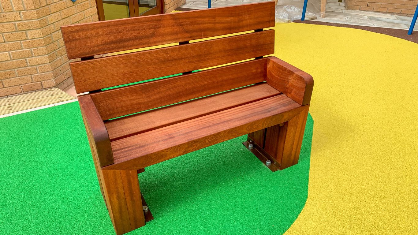 BSFG provided a number of seating elements, planters and Shelters that would sit on the newly installed rubber surface.
