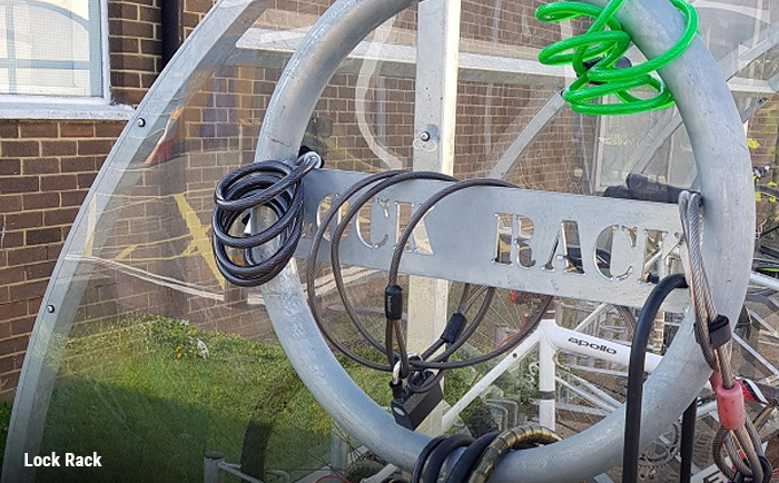 The Cyclepods Lock Rack is designed to allow cyclists to store their locks which adds convenience because it eliminates the need to carry the lock to and from their destination – one less thing to carry!