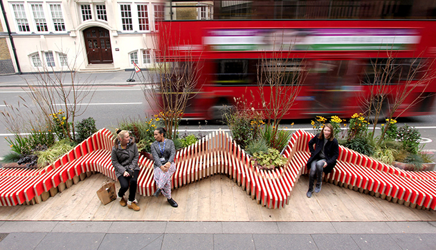 The Parklet Bench designed by WMB Studio can be found on London Bridge. It’s unexpected and your encounter is designed with the sole aim to disrupt your routine, to interrupt your commute or simply to make you look up. Just as Covid has disrupted our 9-5 slog, our routine, street furniture also has the power to force us to re-engage, re-evaluate and consider how we want to proceed.