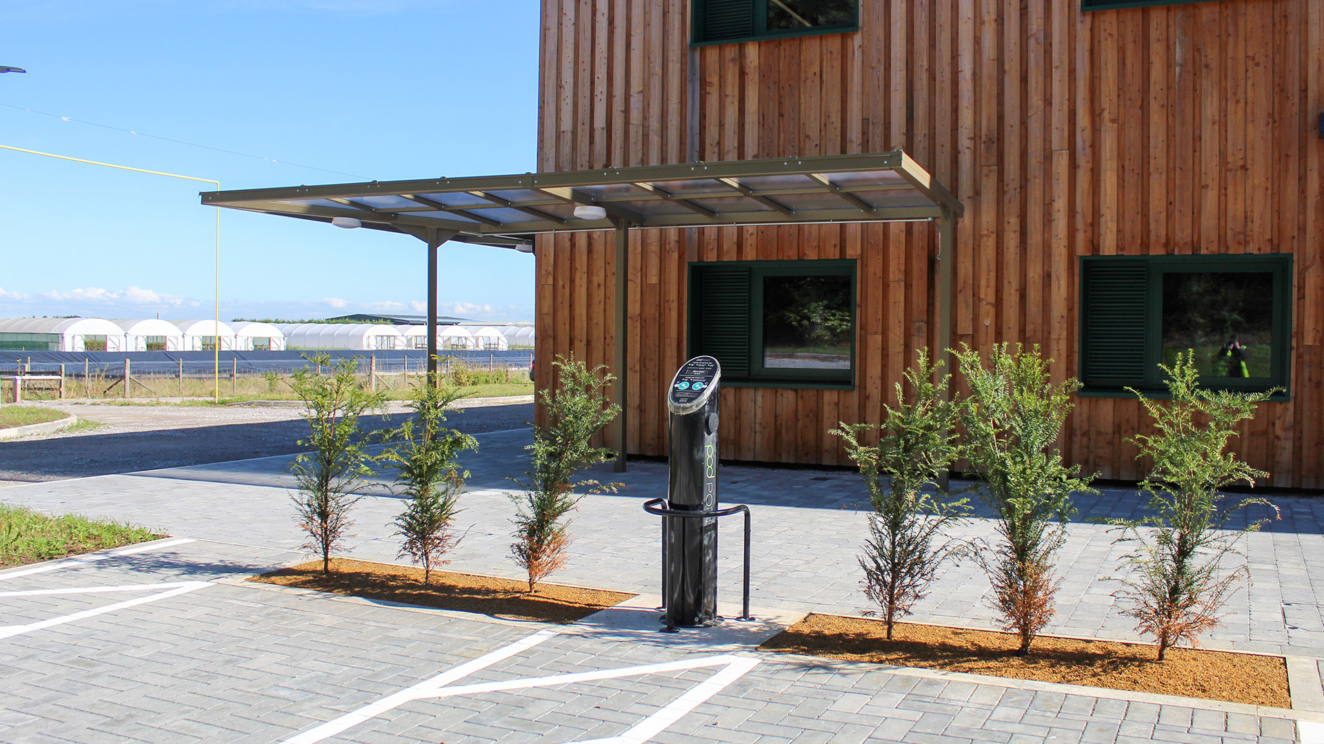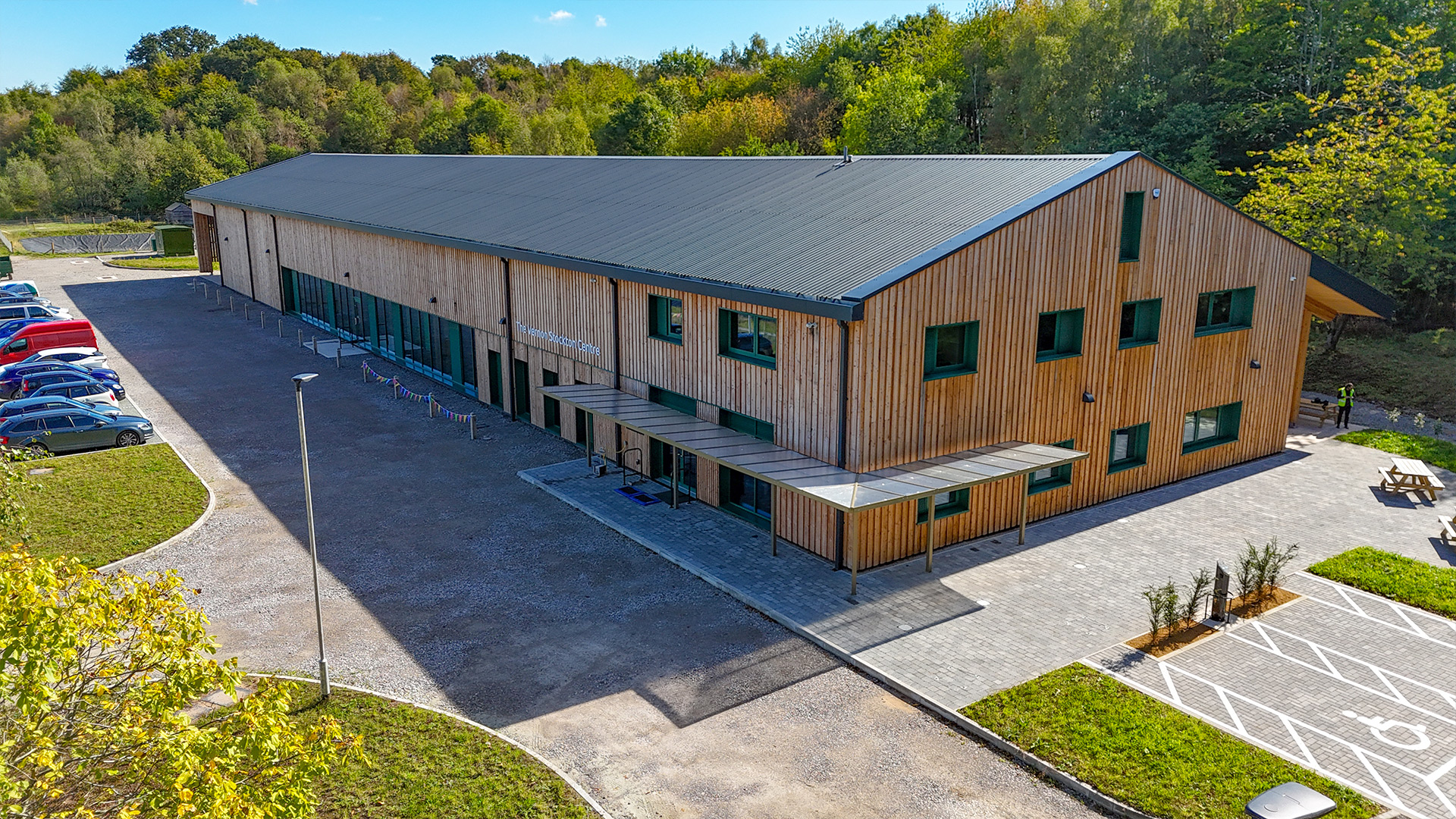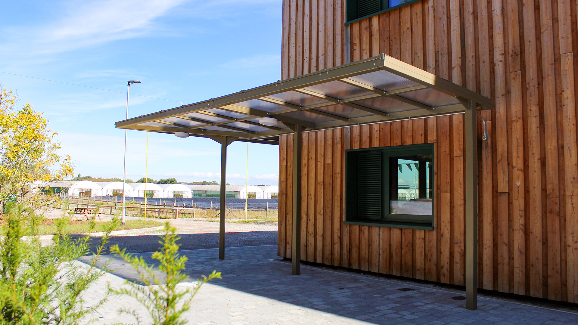 The result is a robust yet elegant canopy that complements the timber-framed, net-zero building while providing a durable, low-maintenance shelter tailored to the centre’s operational needs.
